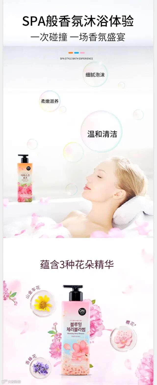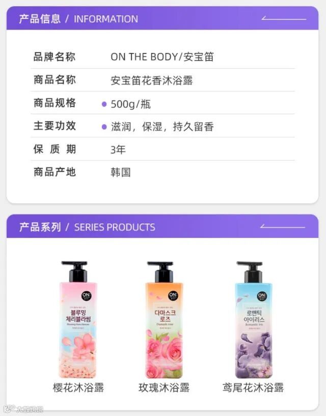 韩国进口LG安宝笛花香沐浴露花漾持久香水沐浴露500ml/瓶(3种香味)
