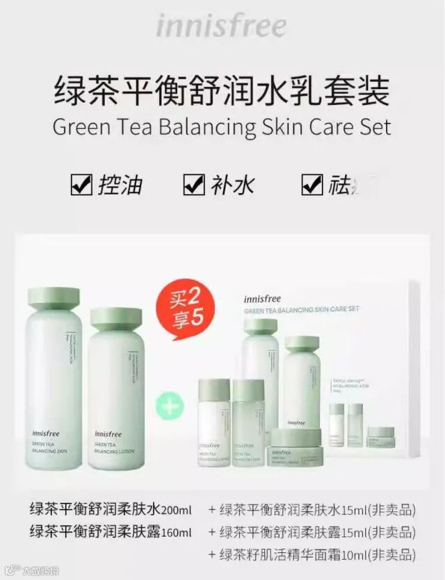 韩国悦诗风吟绿茶水乳套盒补水保湿水油平衡控油