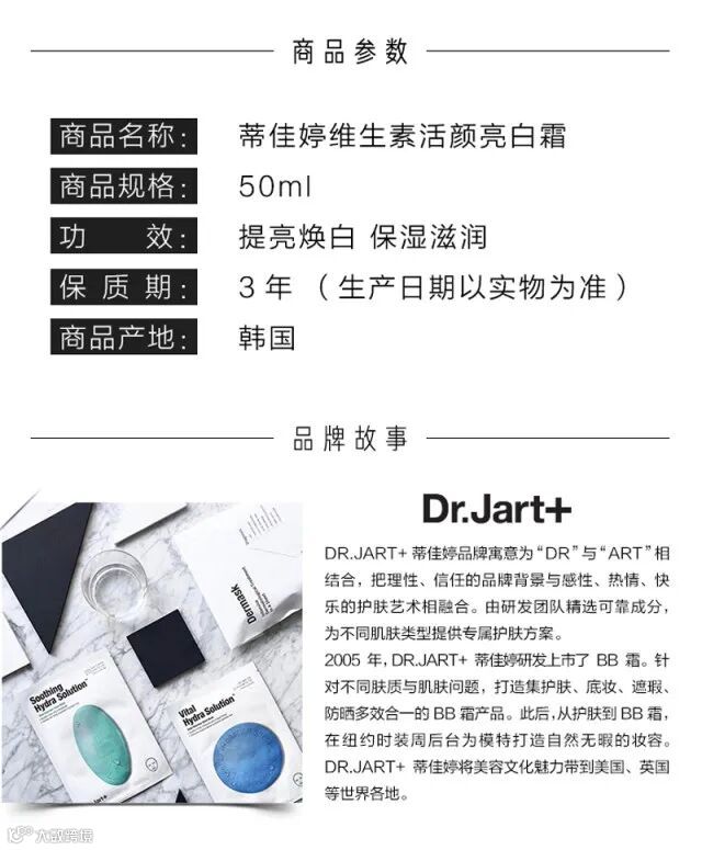 韩国Dr.Jart+蒂佳婷进口维生素活颜亮白霜V7素颜霜懒人霜50ml