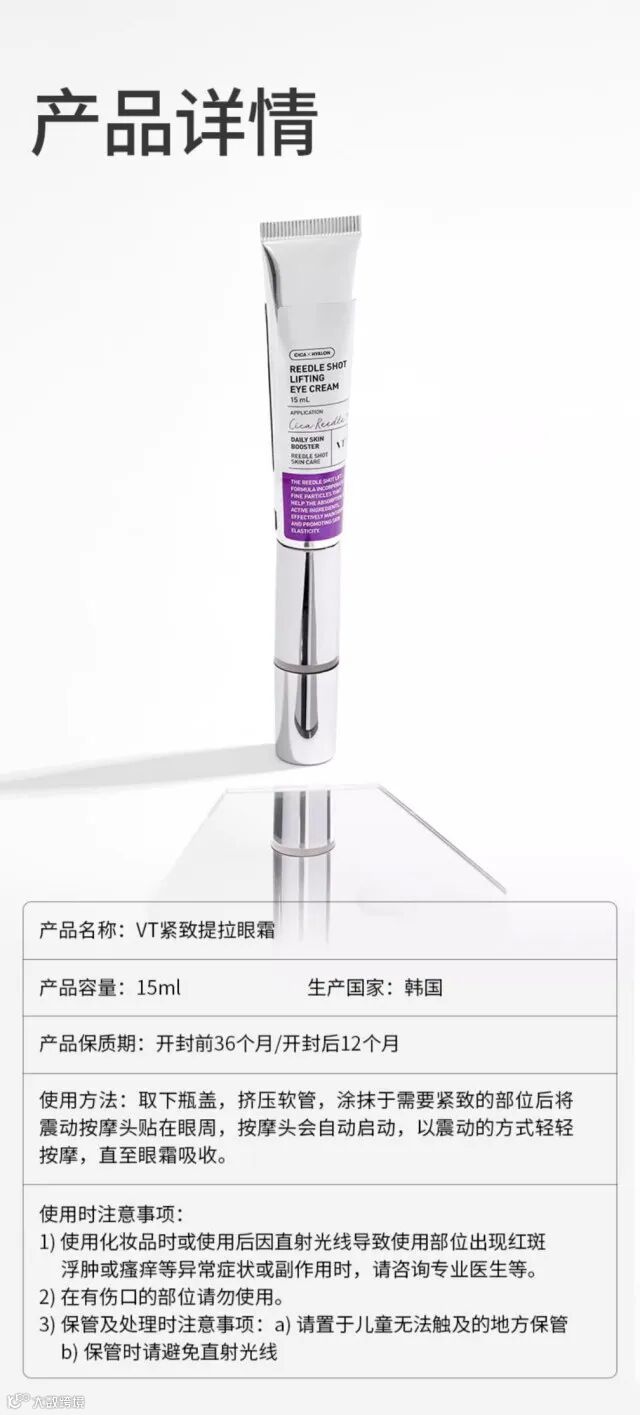 【余额提货】韩国VT薇缔微晶电动提拉紧致眼霜15ml/支