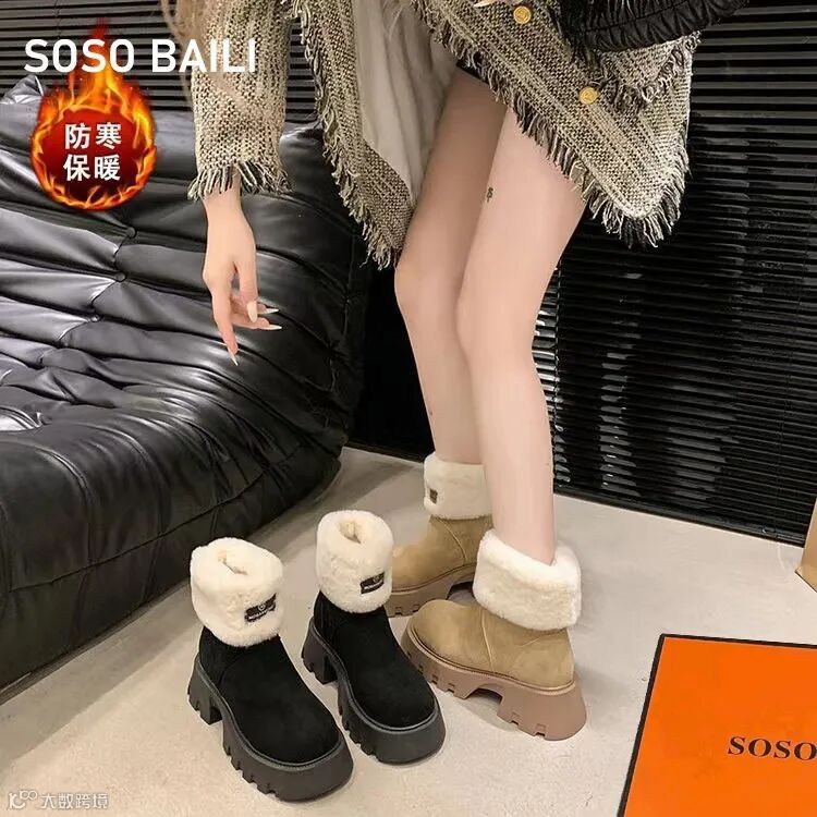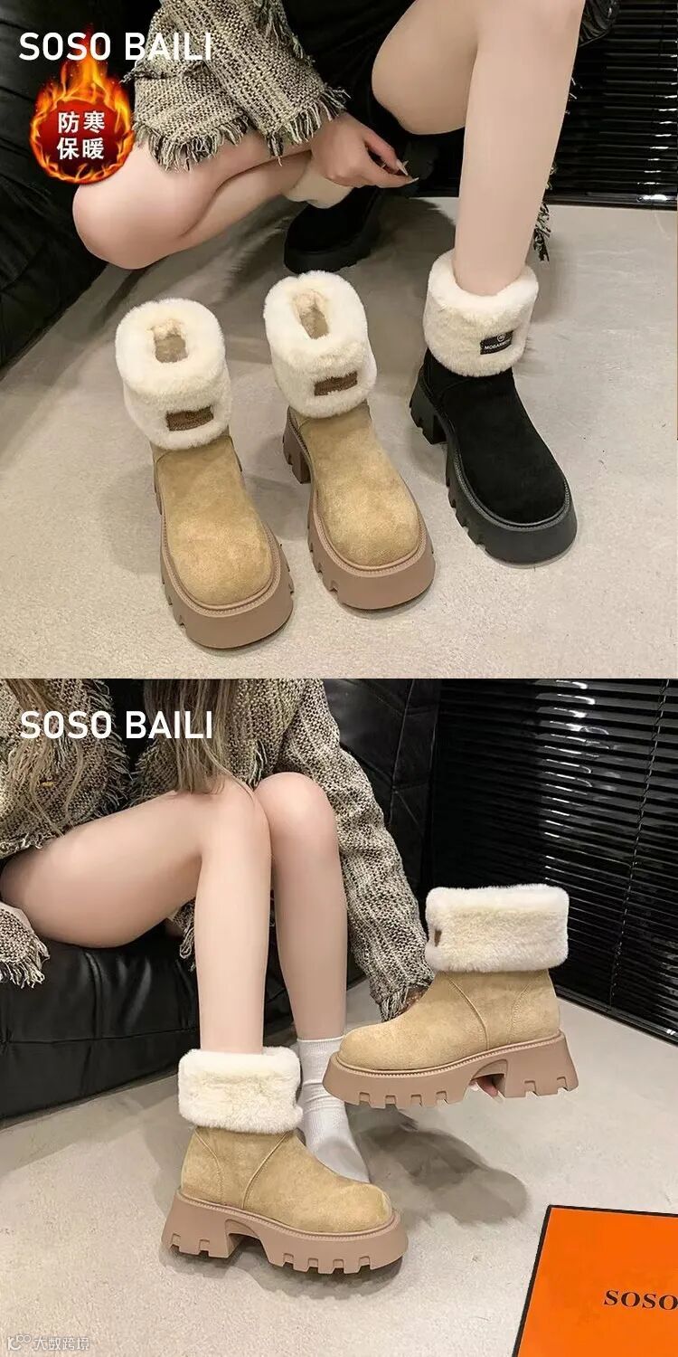 SOSO BAILI高品!!韩剧女主氛围感高级感❗加绒英伦增高短靴