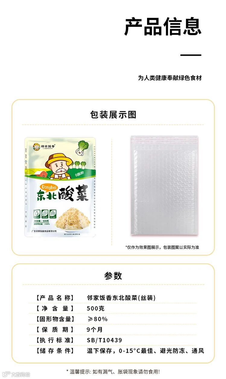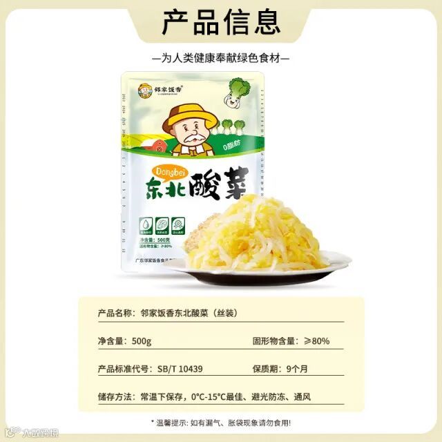 食品名称:邻家饭香东北酸菜(丝装)