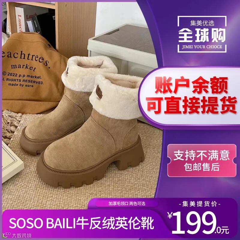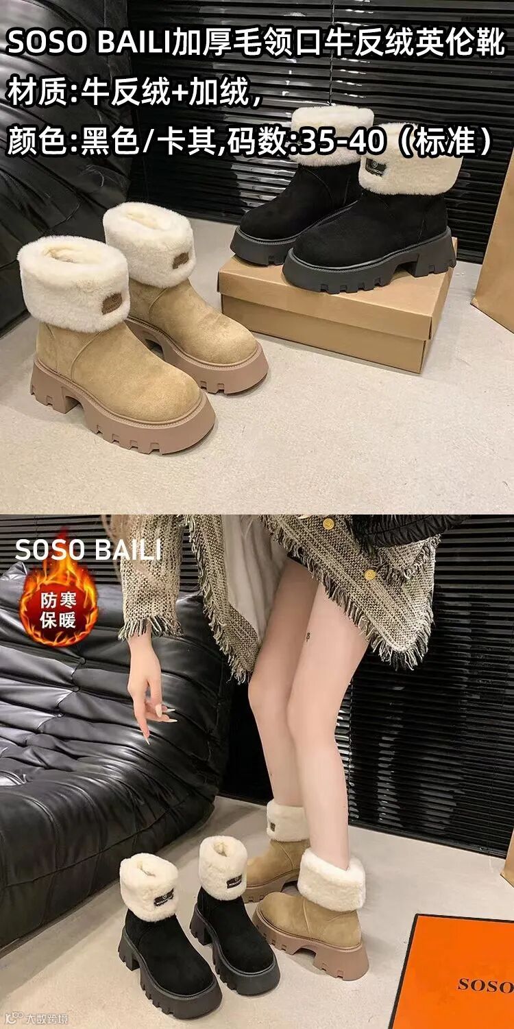【余额提货】SOSO BAILI加厚毛领口牛反绒英伦靴