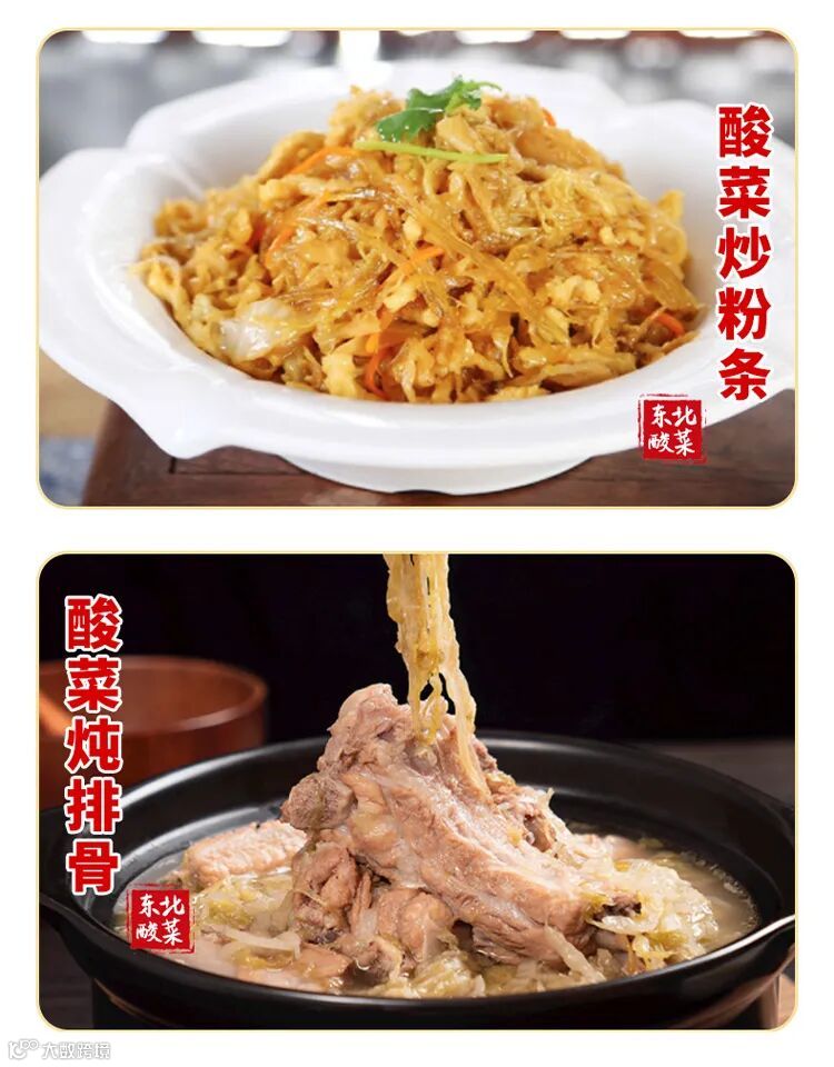 东北酸菜是东北地区的一种家常特色食物。采用大白菜腌制而成,极具东北地方特色。酸菜,古称菹,《周礼》中就有其名。北魏的《齐民要术》,详细介绍了白菜(古称菘)等原料腌渍酸菜的多种方法。白菜经乳酸杆菌(乳酸菌是对人有利的菌)发酵后,产生大量乳酸,不仅口感好,而且对人体有利1