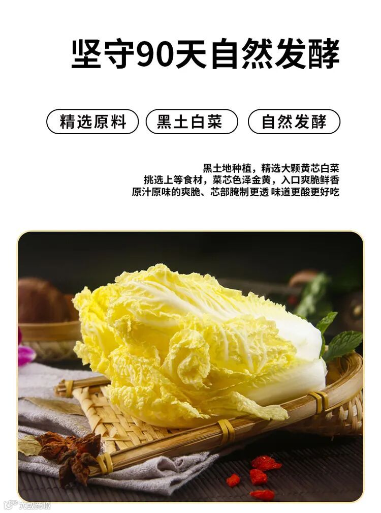 坚持传统工艺腌渍善于借助地利和气候特点让上好的白菜健康发酵确保从帮到叶到芯腌渍彻底