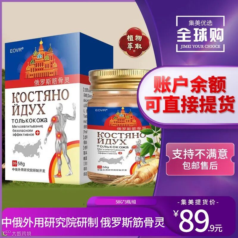 【余额提货】中俄外用研究院研制 俄罗斯筋骨灵58g×3瓶/组