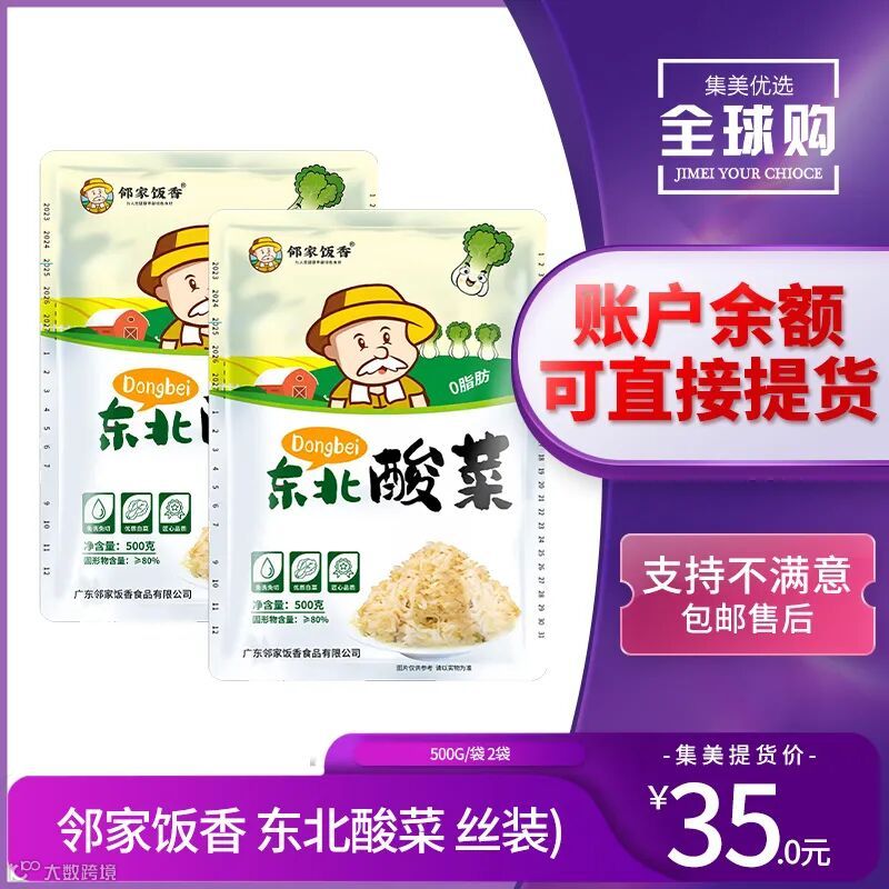【余额提货】邻家饭香 东北酸菜(丝装) 500g/袋 2袋