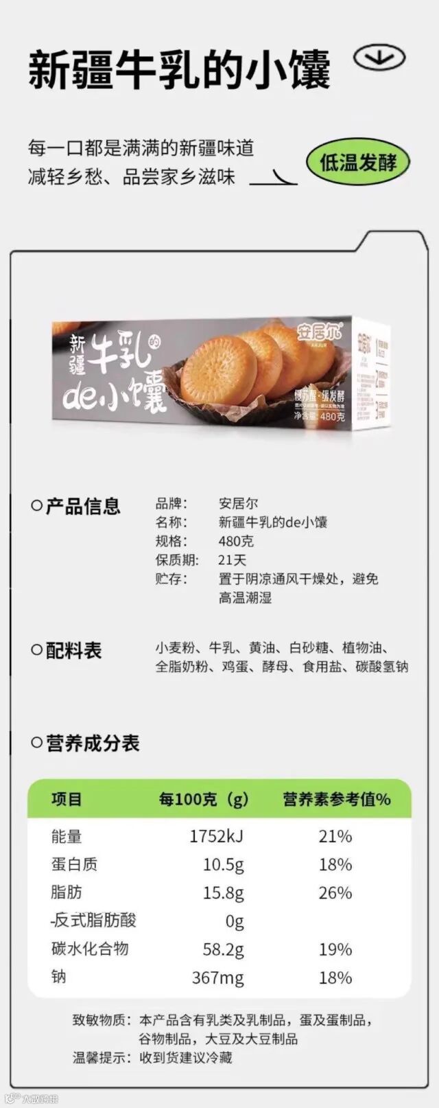 【余额提货】安居尔新疆牛乳小馕饼480g*2箱 独立小包装21天 短保