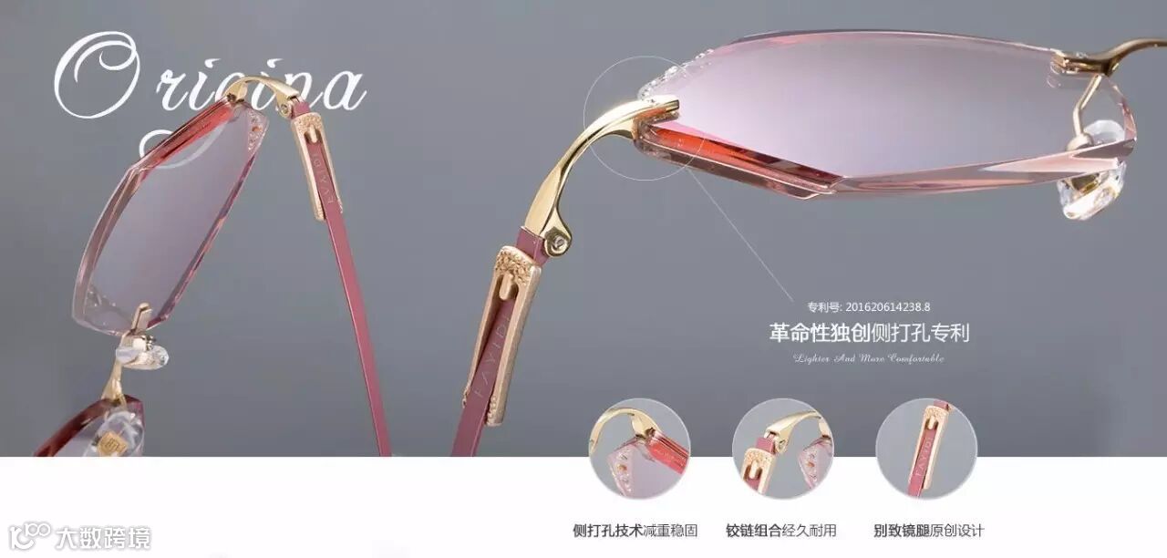 法依笛独家专利侧打孔技术将镜片与镜架融为一个整体。镜片上无需螺丝螺帽,镜面简洁、美观时尚,比普通无框眼镜轻5g以上;眼镜采用进口β钛材料,超轻超弹,品质更可靠,佩戴更舒适;镜脚柔韧不夹耳、桩头与镜片结合更稳固、中梁轻盈不压鼻。镜片与镜架一体式的设计让镜片与镜架结构持久稳固,不易松动,保证镜片轴位瞳距不偏移,佩戴更安全。