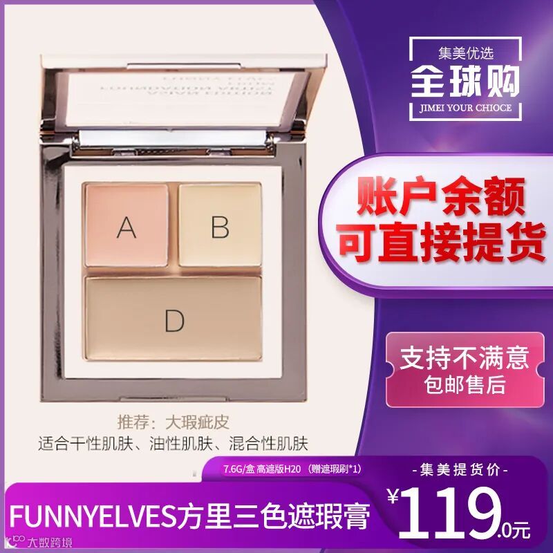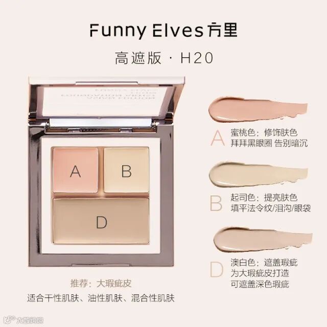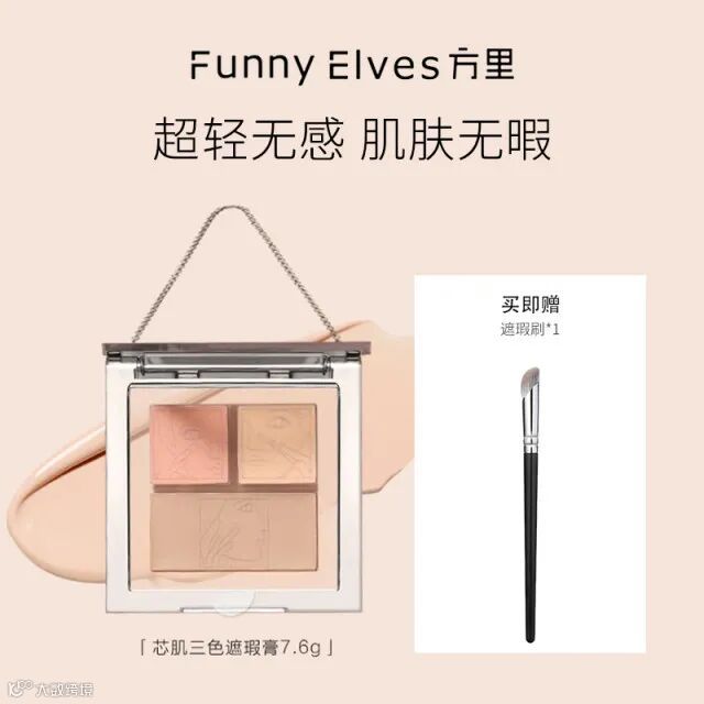 【余额提货】FunnyElves方里三色遮瑕膏7.6g/盒 高遮版H20 (赠遮瑕刷*1)