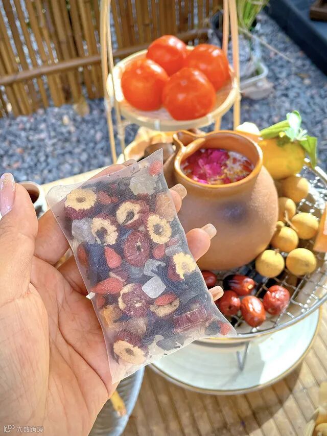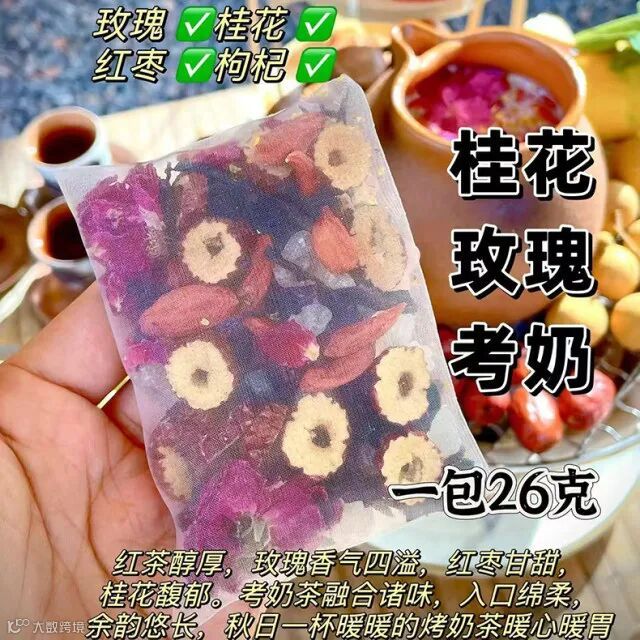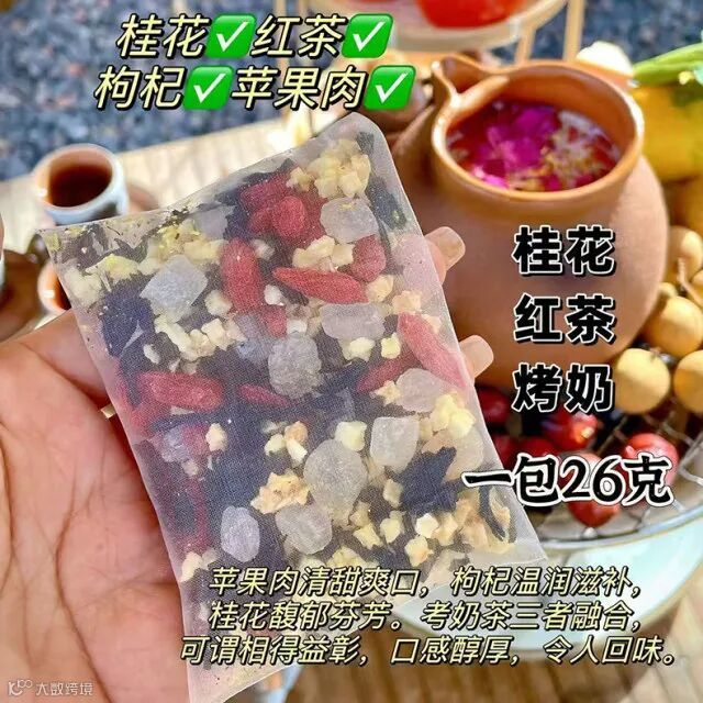 精选玫瑰、桂花、红枣、红茶、绿茶和水果粒