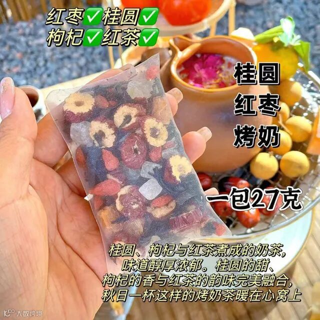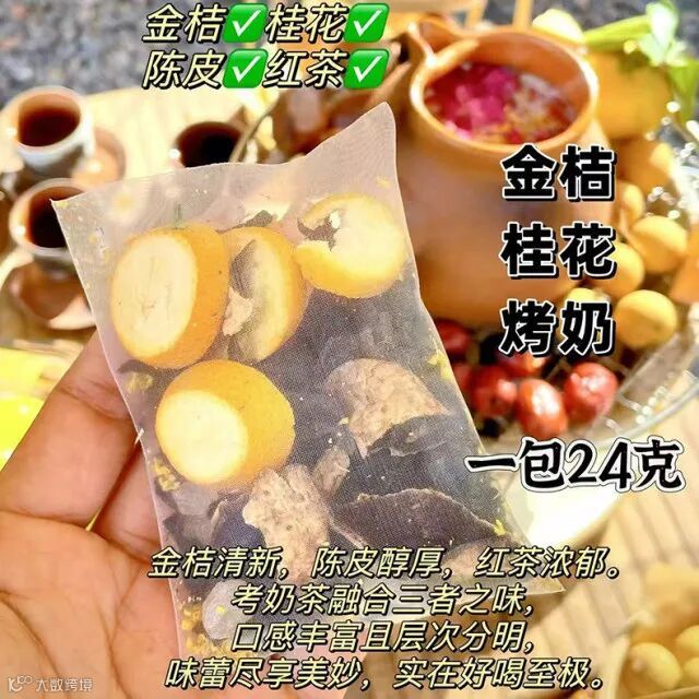 【规格】桂圆红枣烤奶27g*1袋+桂花玫瑰烤奶26g*1袋+桂花红茶烤奶26g*1袋+桑葚玫瑰烤奶28g*1袋+茉莉奶绿28g*1袋+金桔桂花烤奶24g*1袋+雪梨白茶烤奶27g*1袋/盒