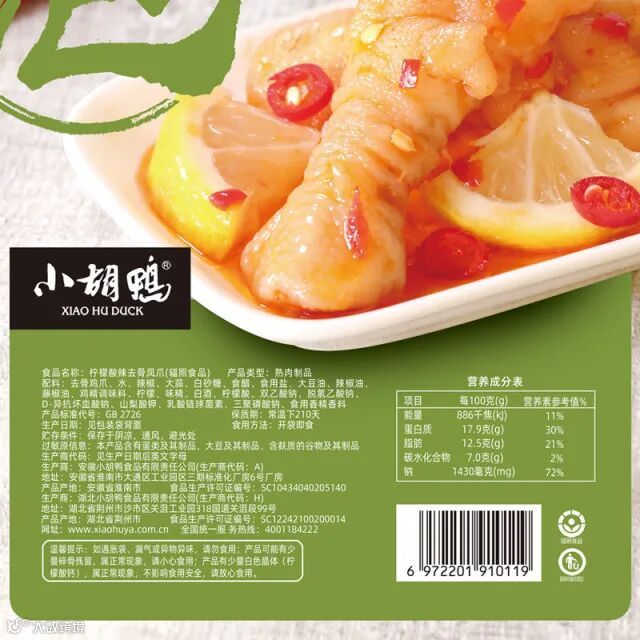 品名:小胡鸭柠檬无骨凤爪