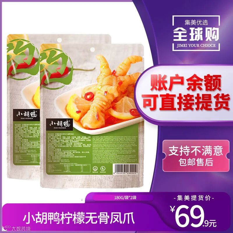 【余额提货】小胡鸭柠檬无骨凤爪180g/袋*2袋