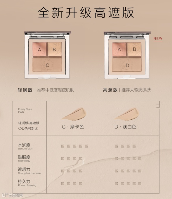 它的每个颜色都非常实用,起司色能够提亮肤色蜜桃色修饰肤色,摩卡色遮盖瑕疵