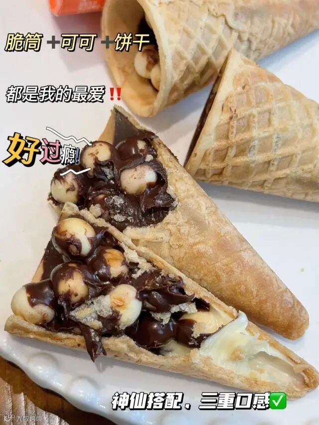 外面是脆筒,里面是可可酱和饼干