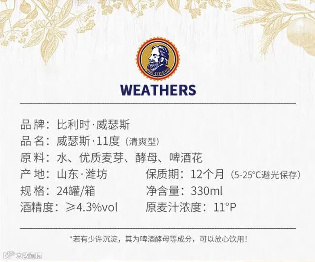 酒精度:≥4.3%vol 原麦汁浓度:11°P