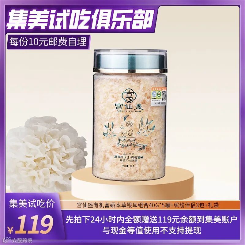 【试吃补贴】宫仙盏有机富硒本草银耳组合40g*5罐+缤纷伴侣3包+礼袋