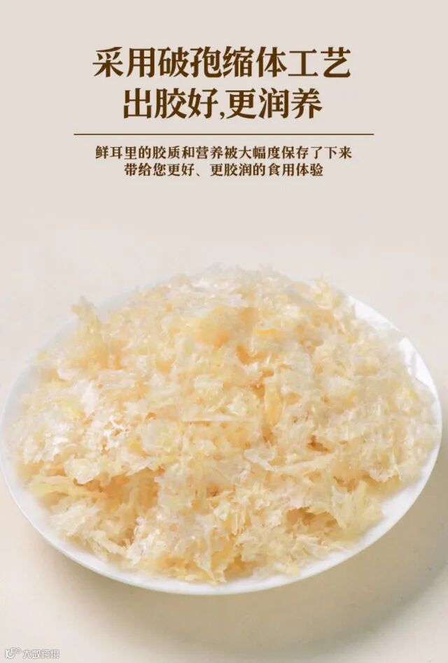 ✅免煮、免炖、无异味!!选取特级银耳嫩尖,采用低温破壁技术锁鲜,出胶特快