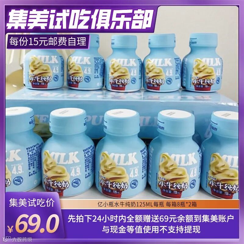 【试吃补贴】亿小瓶水牛纯奶125ml每瓶 每箱8瓶*2箱