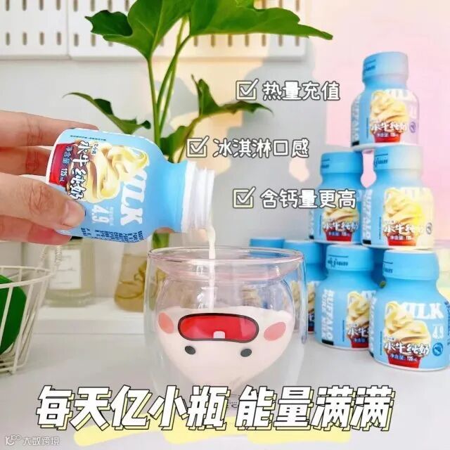 ‼一般牛奶钙含量在100mg/100ml左右,而亿小瓶钙含量每一百毫升就有130毫克的钙含量,更好补充钙元肪