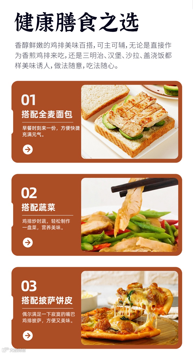 另外鸡排中的蛋白质含量高,脂肪低,胆固醇低,热量低。孩子、老人等健康膳食之选对于健身人群和减肥期间的小伙伴们来说,这款鸡排简直就是解馋神器,放心吃,不长肉!
