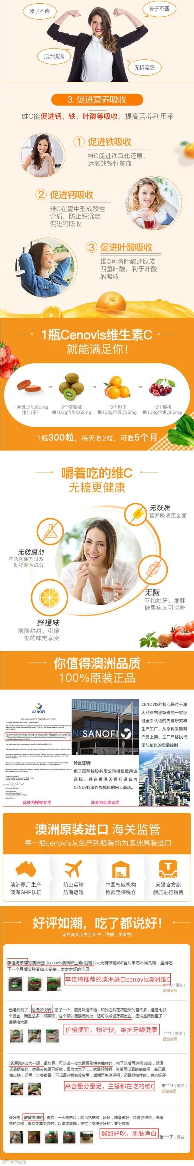 【保健品专场】澳洲 cenovis/圣诺 无糖维生素c咀嚼片500mg/300粒 原价:189元 粉丝群补贴价:88元