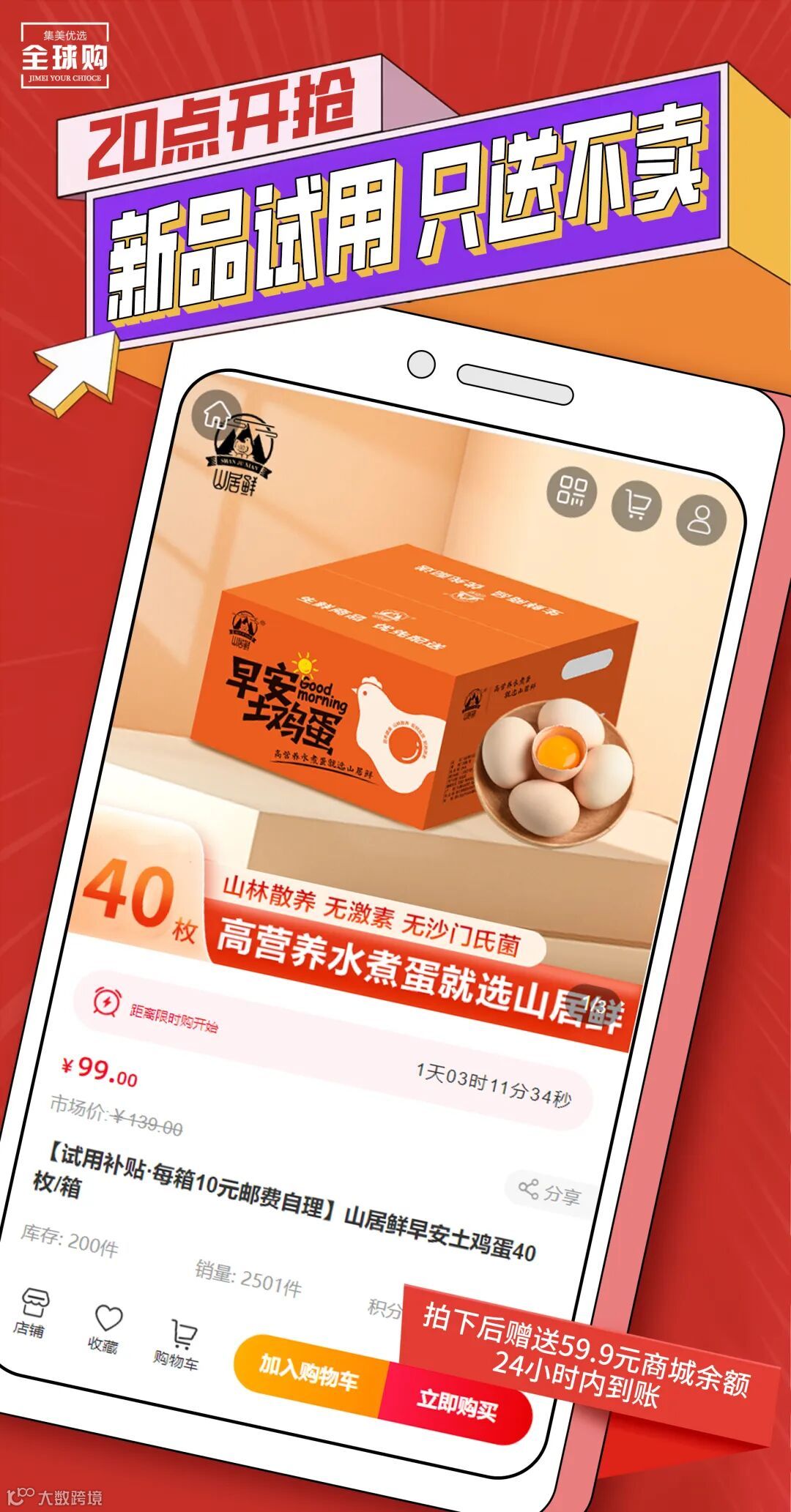 【试用补贴·每箱10元邮费自理】山居鲜早安土鸡蛋40枚/箱