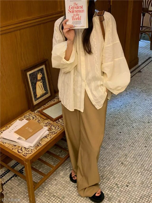 这款衬衫当季的搭配良手基础款的服饰很不错