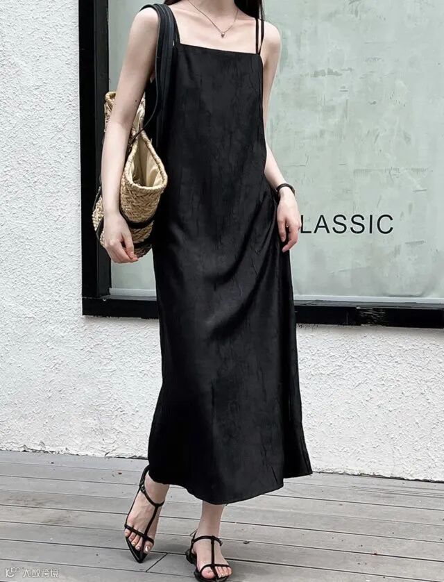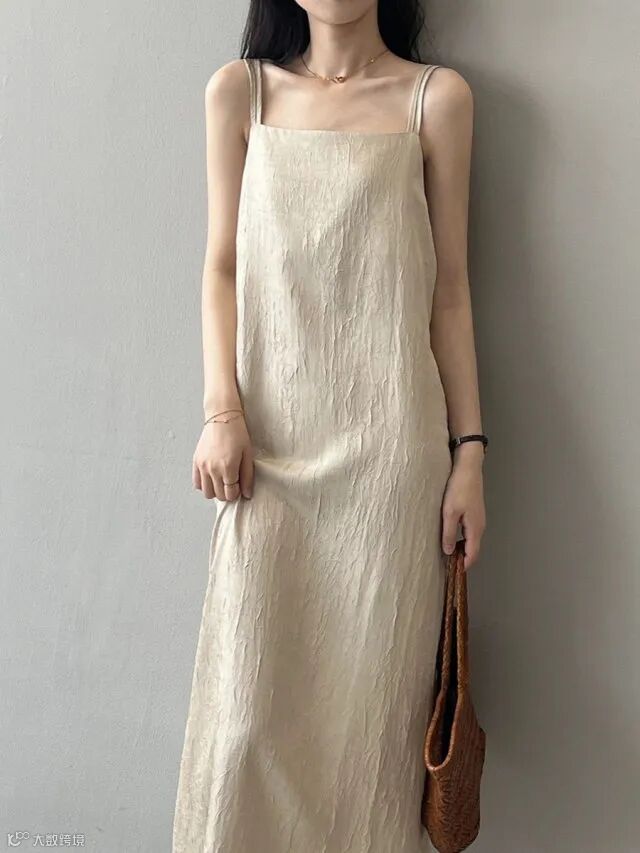 平口领设计,优雅又大方,吊带款式,轻松展现你的迷人锁骨