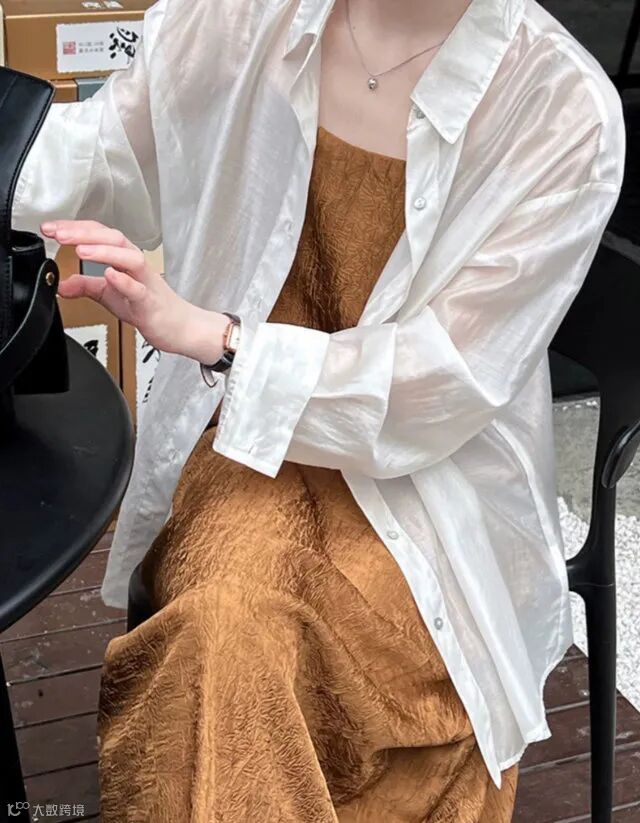 搭配宽松防晒衬衣,贵女气质完美拿捏