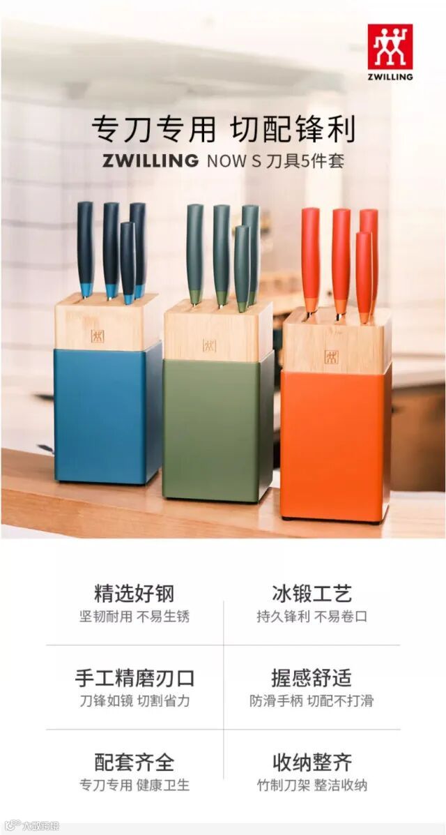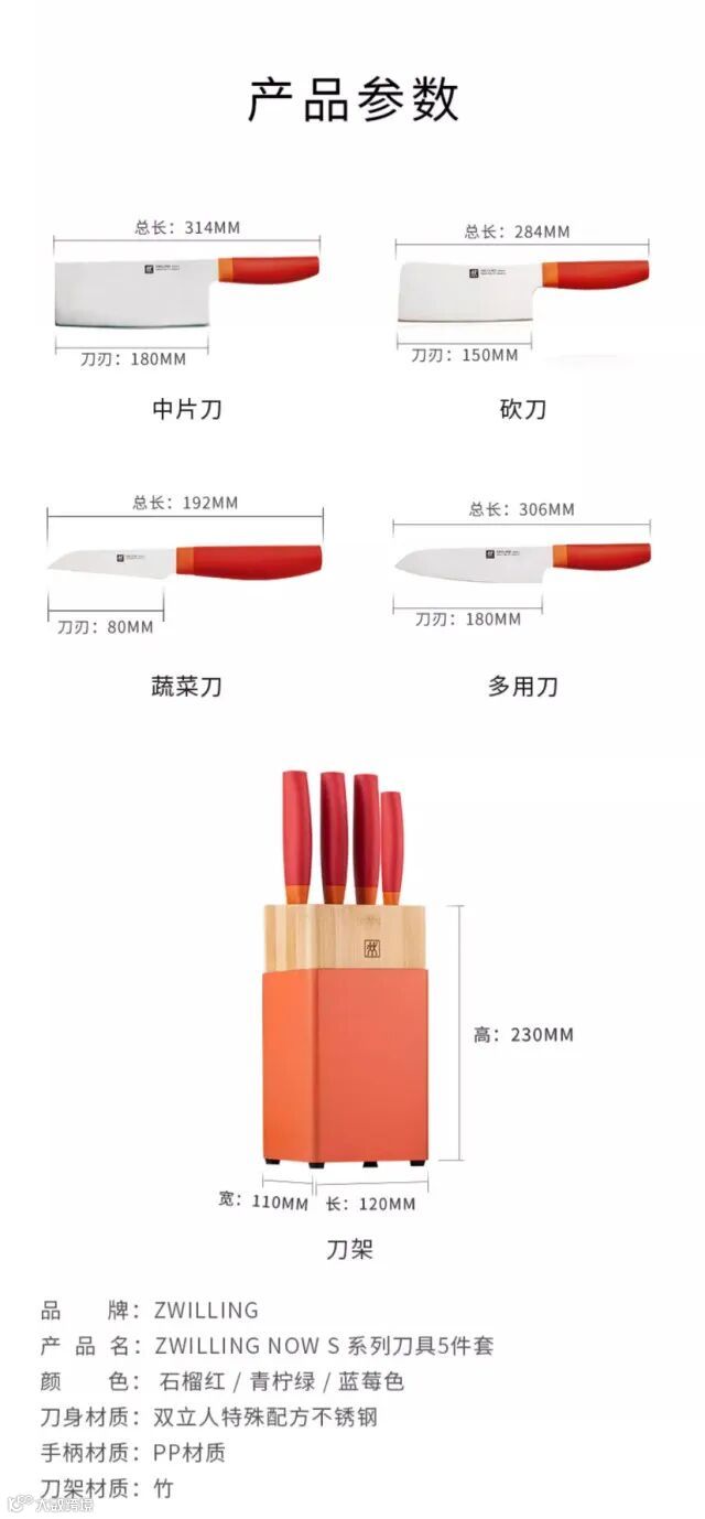 【双立人专场】德国双立人NowS刀具5件套厨房家用不锈钢刀具套装菜刀砍刀 原价:1399元 粉丝群补贴价:888元