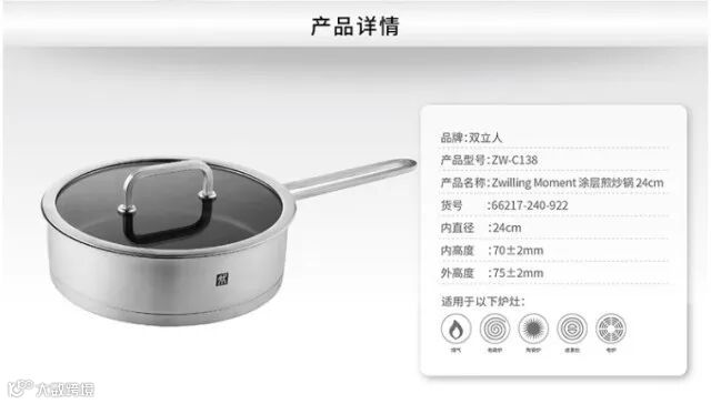 双立人Moment24cm单柄煎炒锅平底锅66217-240-922 原价:1398元 粉丝群补贴价:1080元