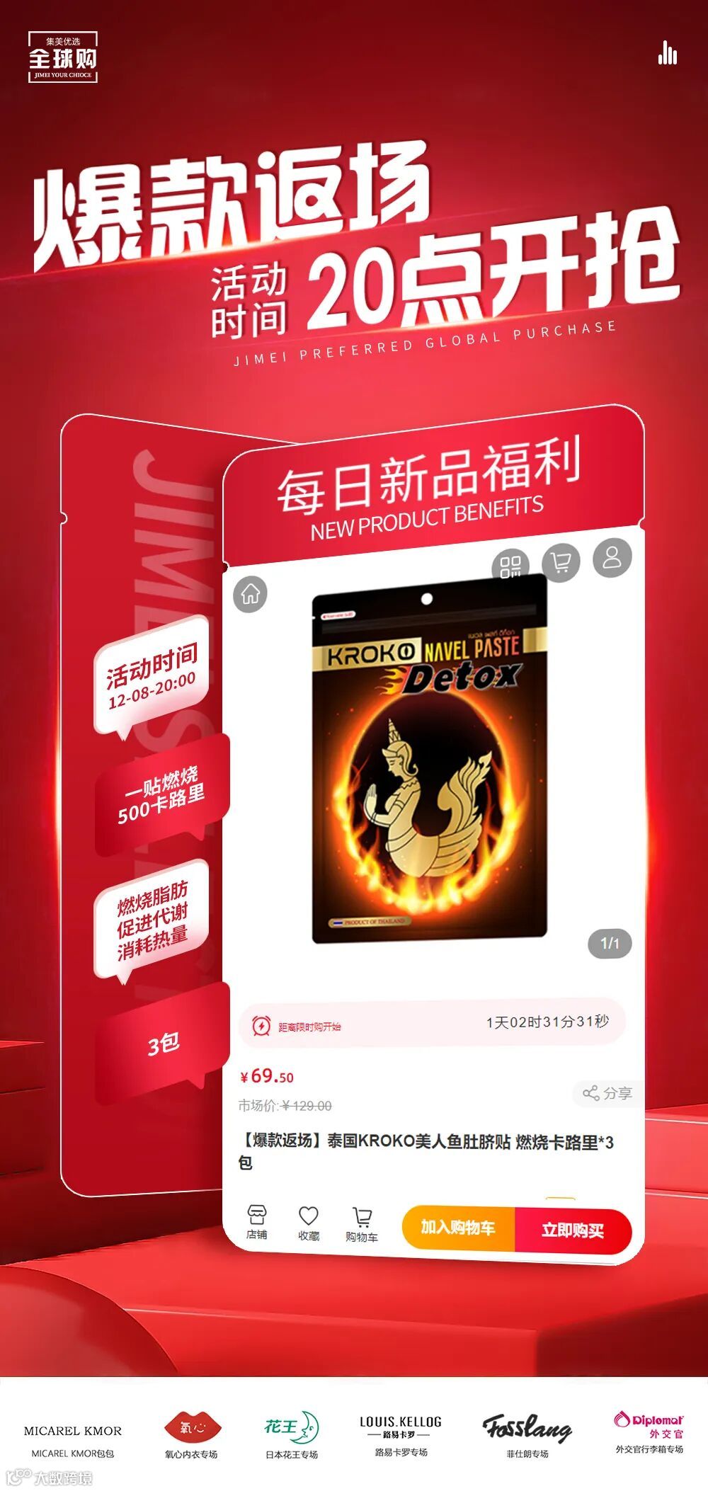 【爆款返场】泰国KROKO美人鱼肚脐贴 燃烧卡路里*3包 原价:129元 粉丝群补贴价:69.5元