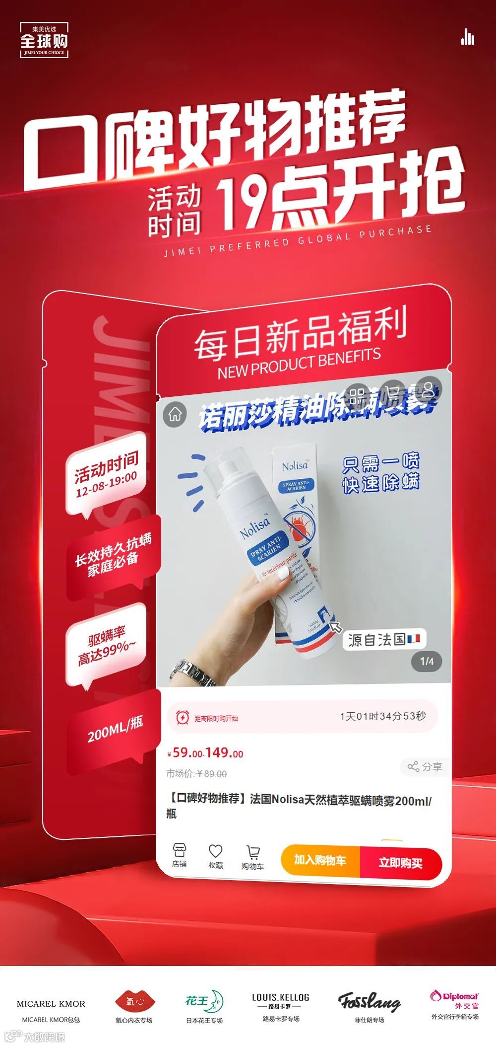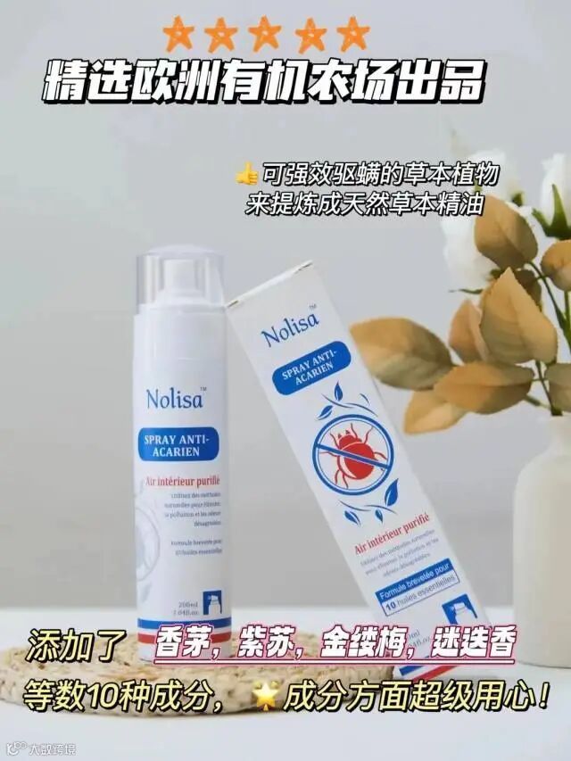 【口碑好物推荐】法国Nolisa天然植萃驱螨喷雾200ml/瓶 原价:89元 粉丝群补贴价:59元起
