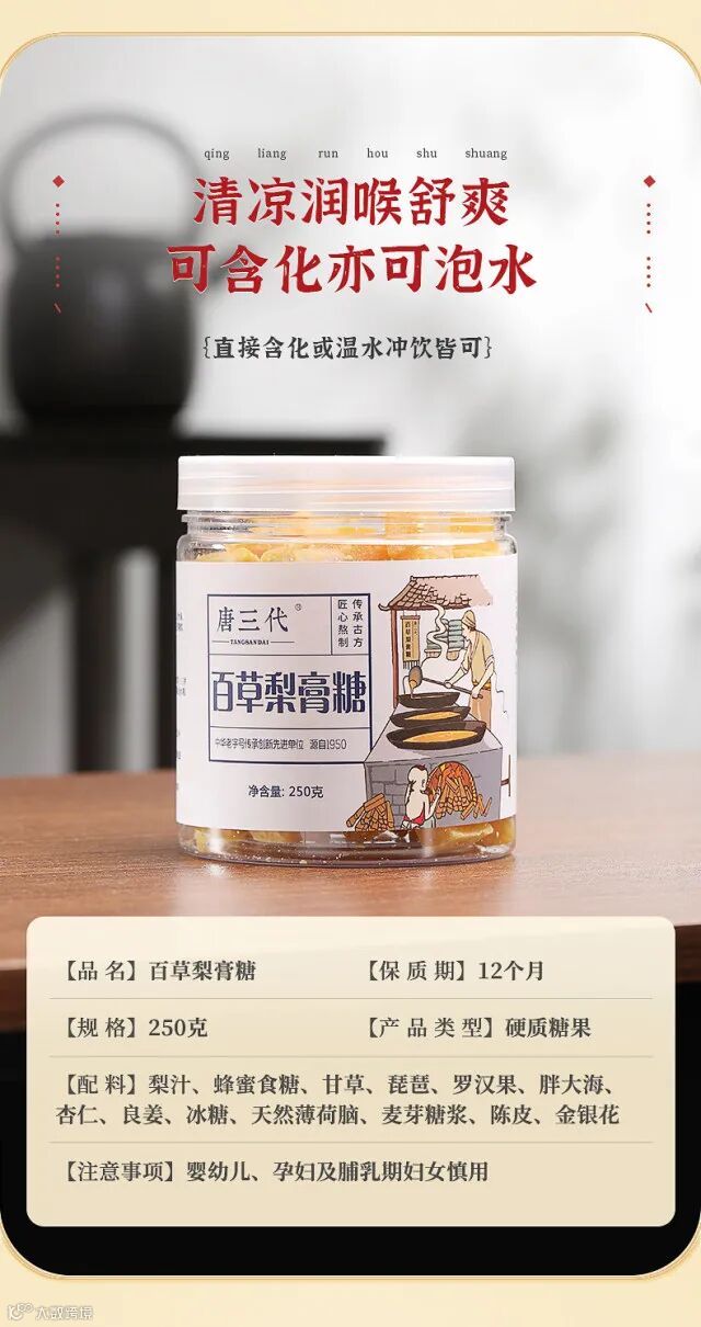 【新品补贴推荐】唐三代百草梨膏糖 250克*2罐 原价:89元 粉丝群补贴价:68.3元