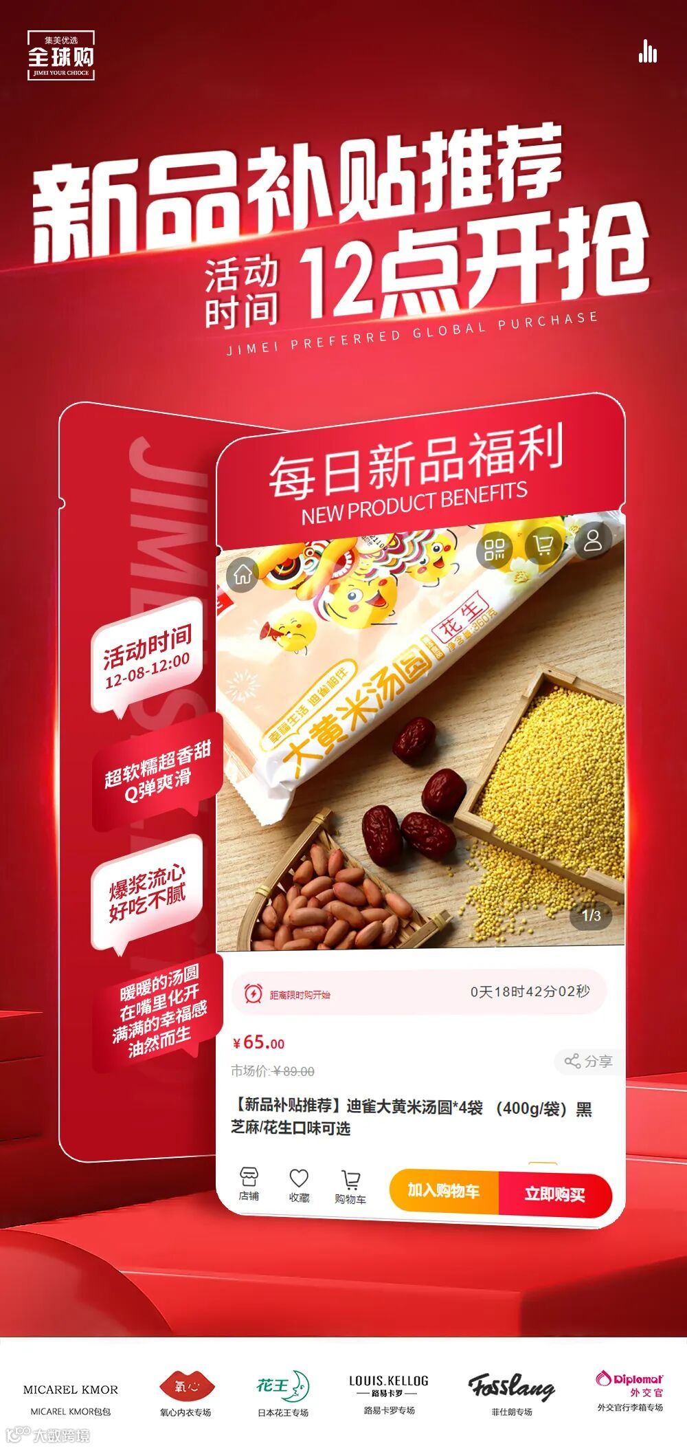 【新品补贴推荐】迪雀大黄米汤圆*4袋 (400g/袋)黑芝麻/花生口味可选 原价:89元 粉丝群补贴价:65元