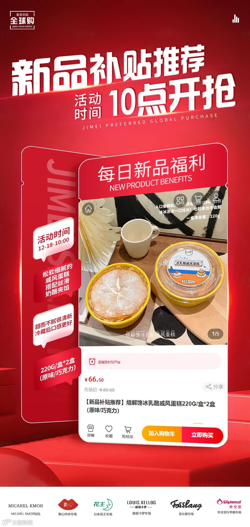 【品名】:焙解馋冰乳酪戚风蛋糕