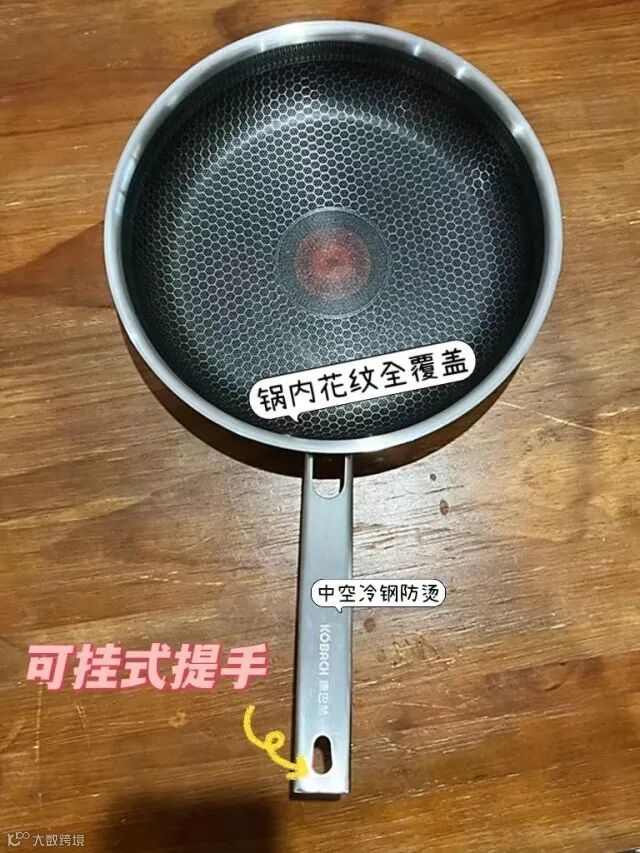 康巴赫红点感温蜂窝煎锅 26cm家用蜂窝不粘煎锅