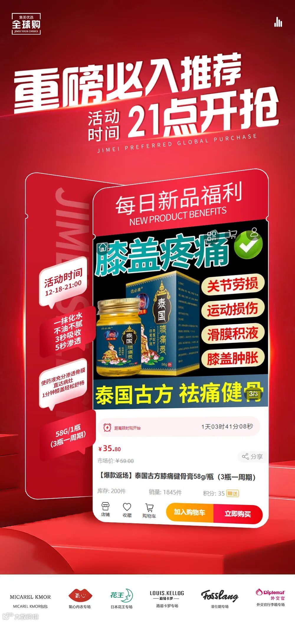 泰国古方膝痛健骨膏58g/瓶(3瓶一周期)