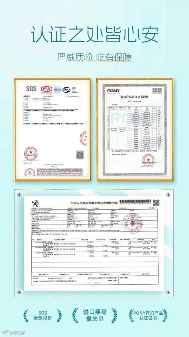 ★燕窝原料全部来自优质的、可溯源的印尼热带雨林雨季燕窝,有燕窝进口报关单等凭证可查
