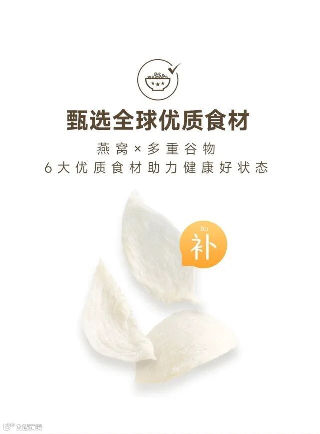 燕窝与五谷精心调配,低卡低糖、营养均衡