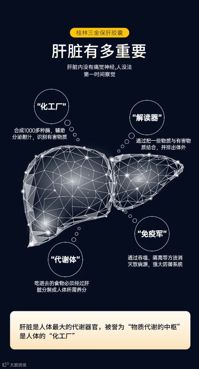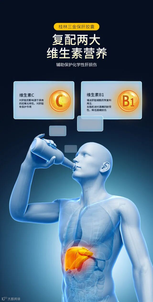 本品是以葛根、枳椇果、积雪草、菊花、陈皮、茵陈、干姜、绿茶叶、维生素C、维生素B1为主要原料制成的保健食品,经功能试验证明,本品具有对化学性肝损伤有辅助保护作用的保健功能。