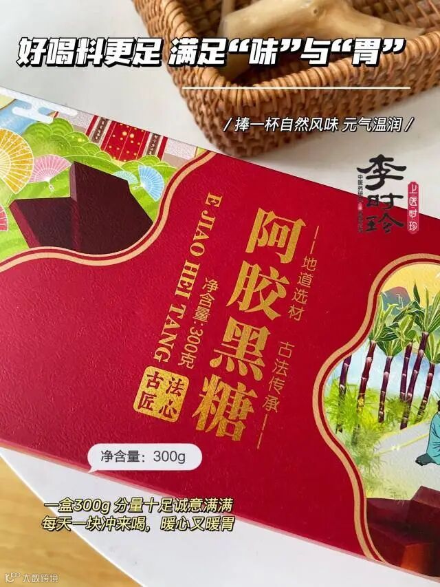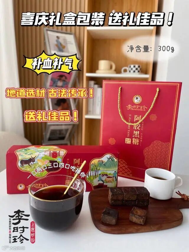 【新品补贴】李时珍中医药研究&上医时珍 阿胶黑糖300g(约16块)*3盒