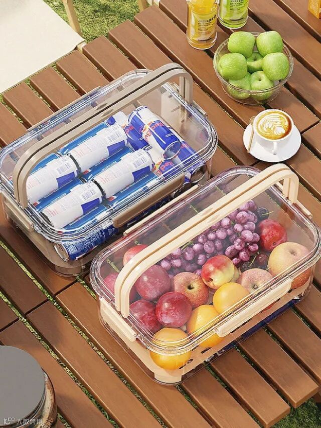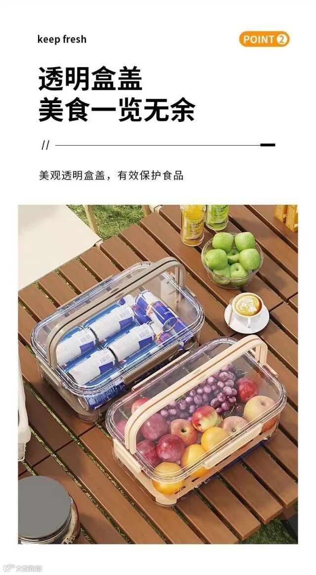 【新品补贴】踏春露营 手提3色双层沥水保鲜盒 25cmx16.5cmx11.5cm