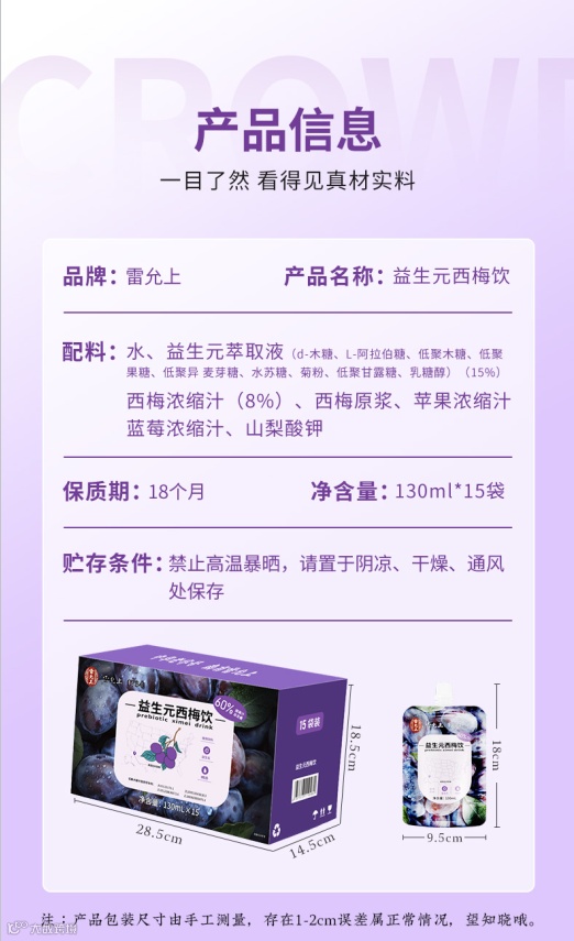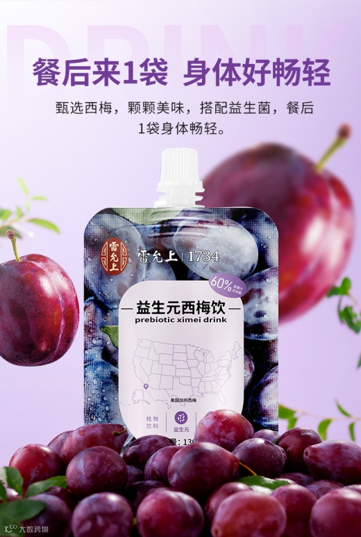 【新品补贴】雷允上·1734益生元西梅饮130ml/袋*15袋