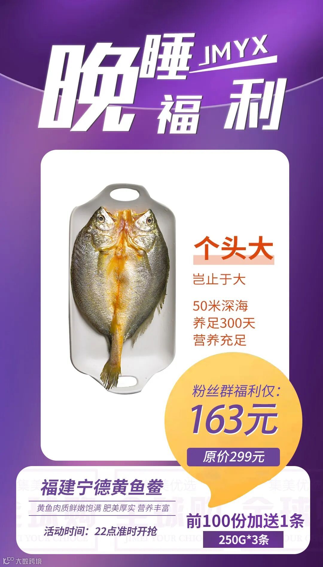 【晚睡福利·顺丰冷链】福建宁德黄鱼鲞250g*3条 前100份加送1条(共4条) 原价:299元 粉丝群补贴价:163元