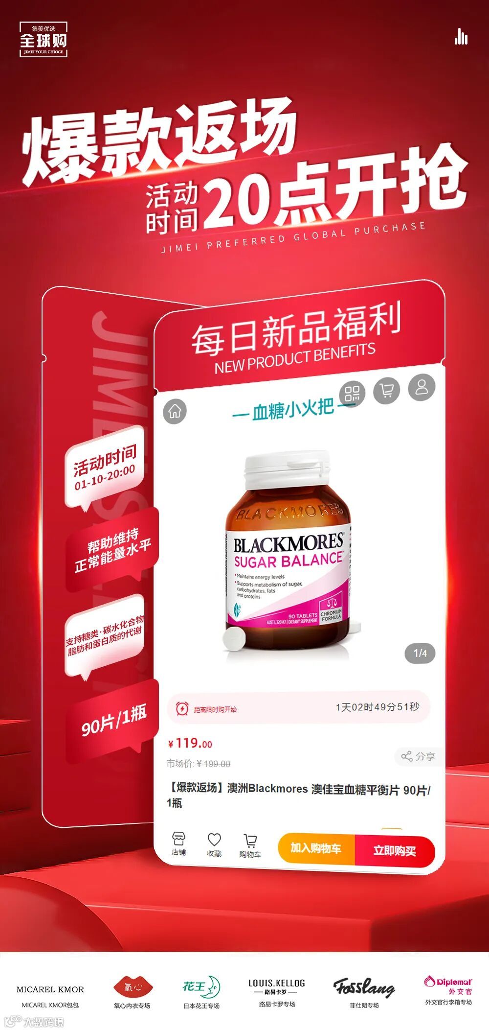【爆款返场】澳洲Blackmores 澳佳宝血糖平衡片 90片/1瓶 原价:199元 粉丝群补贴价:119元