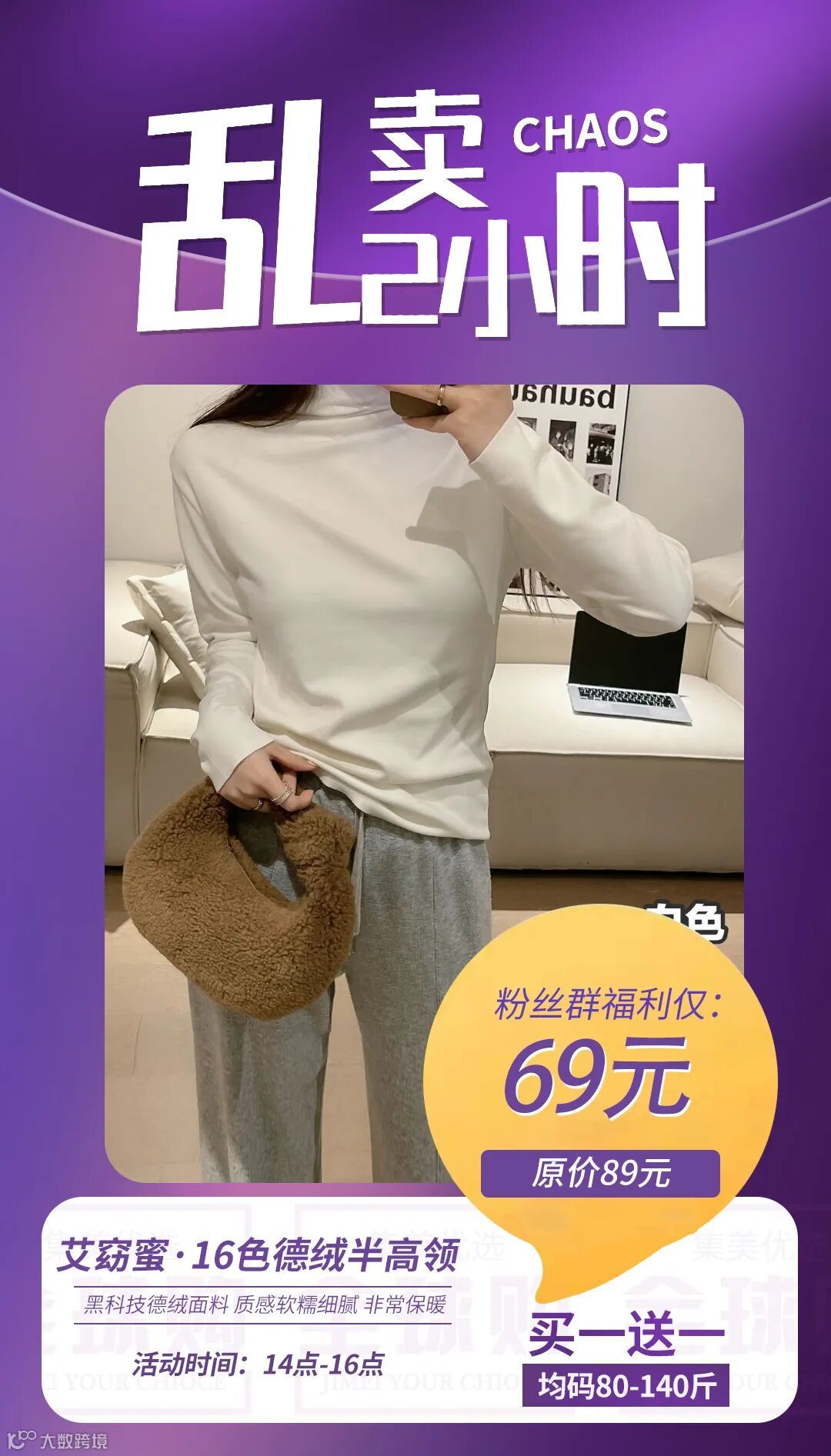 【乱卖2小时·买一送一】艾窈蜜·16色德绒半高领 均码80-140斤 原价:89元 粉丝群补贴价:69元
