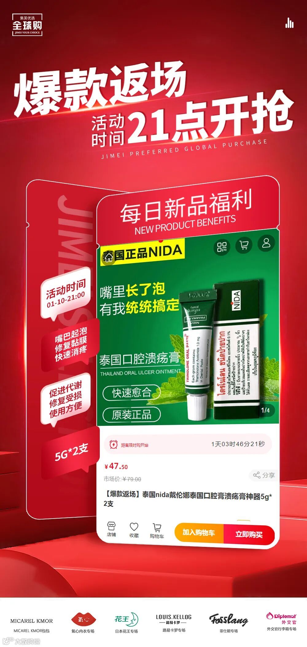 【爆款返场】泰国nida戴伦娜泰国口腔膏溃疡膏神器5g*2支 原价:79元 粉丝群补贴价:47.5元
